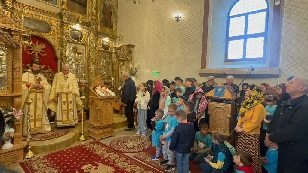 La Sfânta Liturghie au participat, cu emoție și evlavie, copiii Așezământului social „Sfântul Ierarh Iosif cel Milostiv”, care s-au împărtășit cu Sfintele Taine, pregătindu-se prin rugăciune și spovedanie. Chipurile lor luminoase au adus o atmosferă de curăție și speranță, amintind tuturor că Împărăția lui Dumnezeu se primește cu inimă de copil.